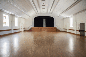 Cette salle peut accueillir 180 personnes. Elle dispose d’une scène et d’une cuisine (uniquement pour le réchauffage de plats).