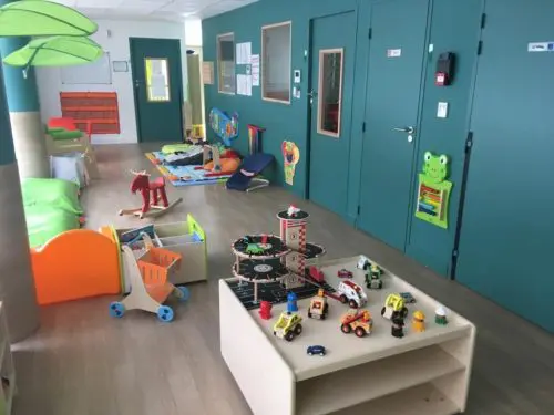 Un parking gratuit avec des places réservées aux familles se situe devant la crèche.